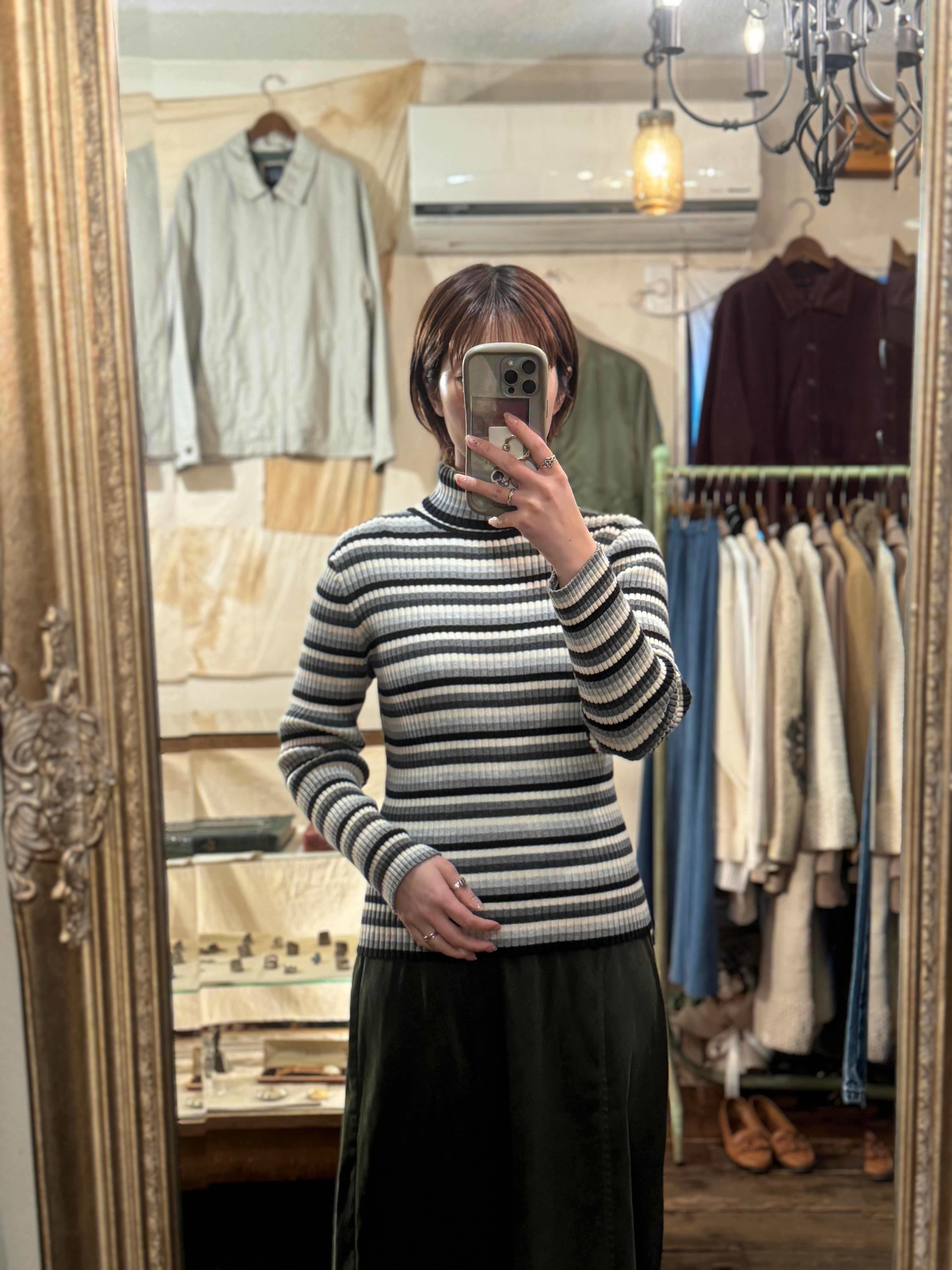 border turtleneck knit (black grey white)