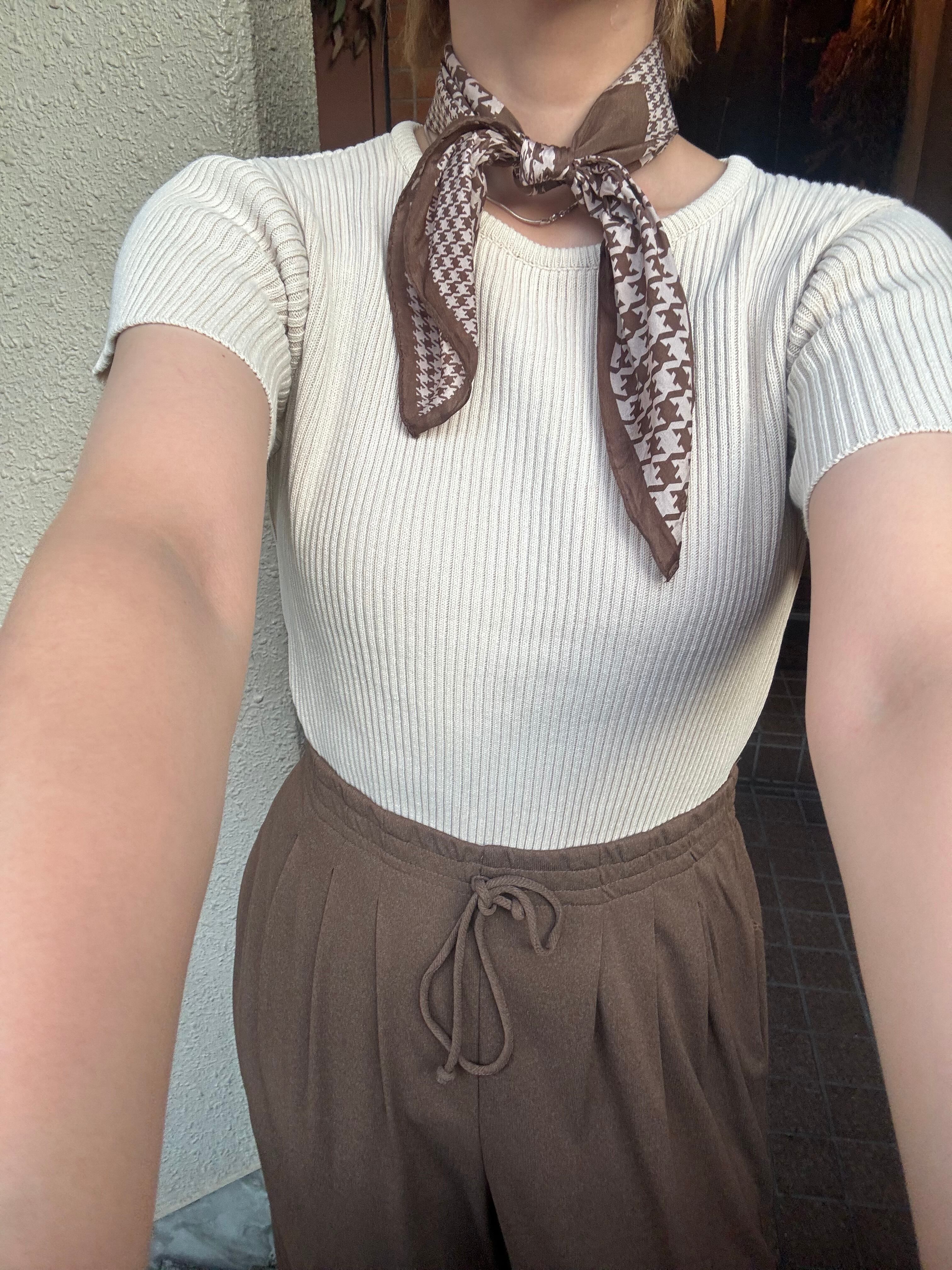 アイボリーの使いやすいシンプルサマーニットは意外と少ないので、大変おすすめです^^
