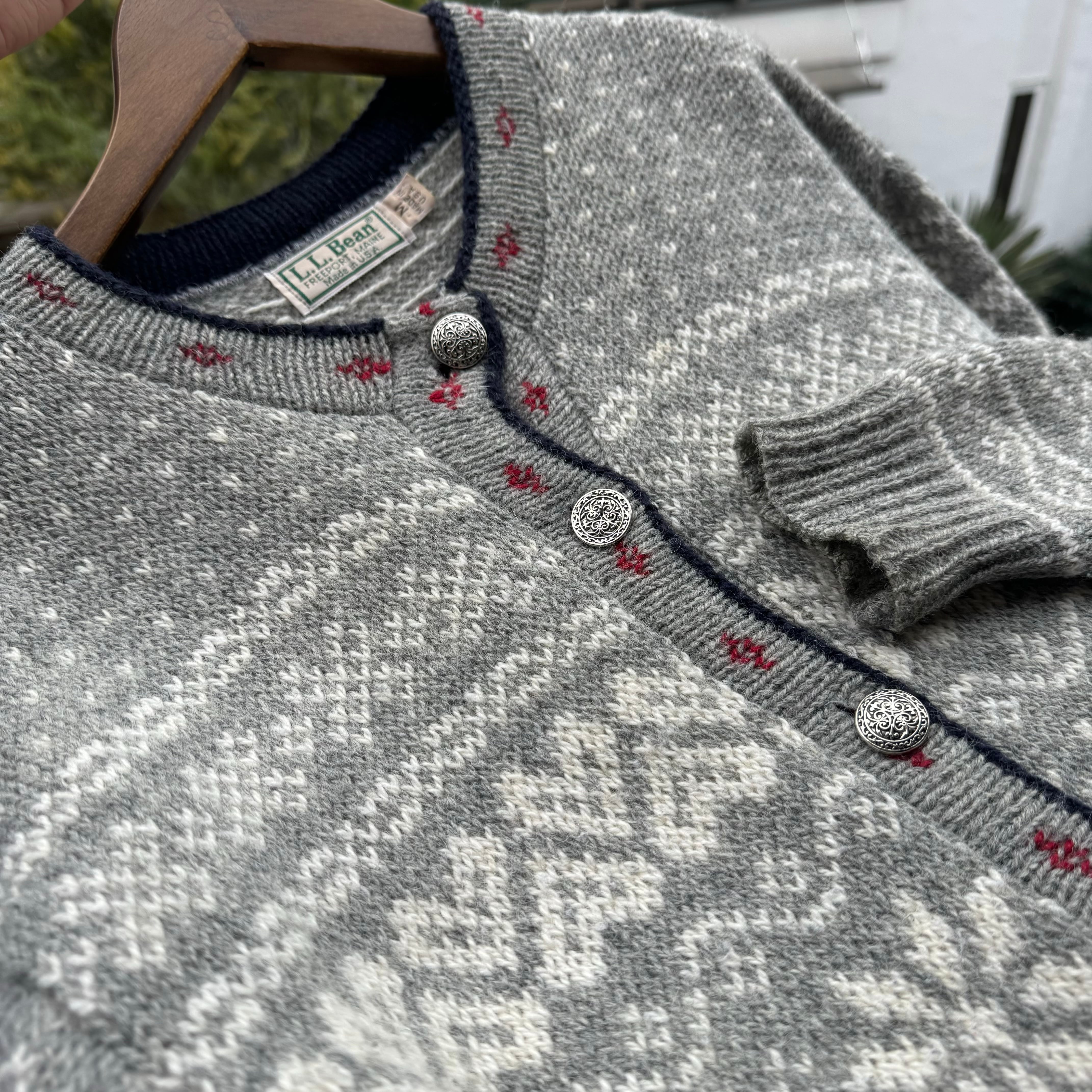 L.L.Bean Nordic pattern knit cardigan (grey)